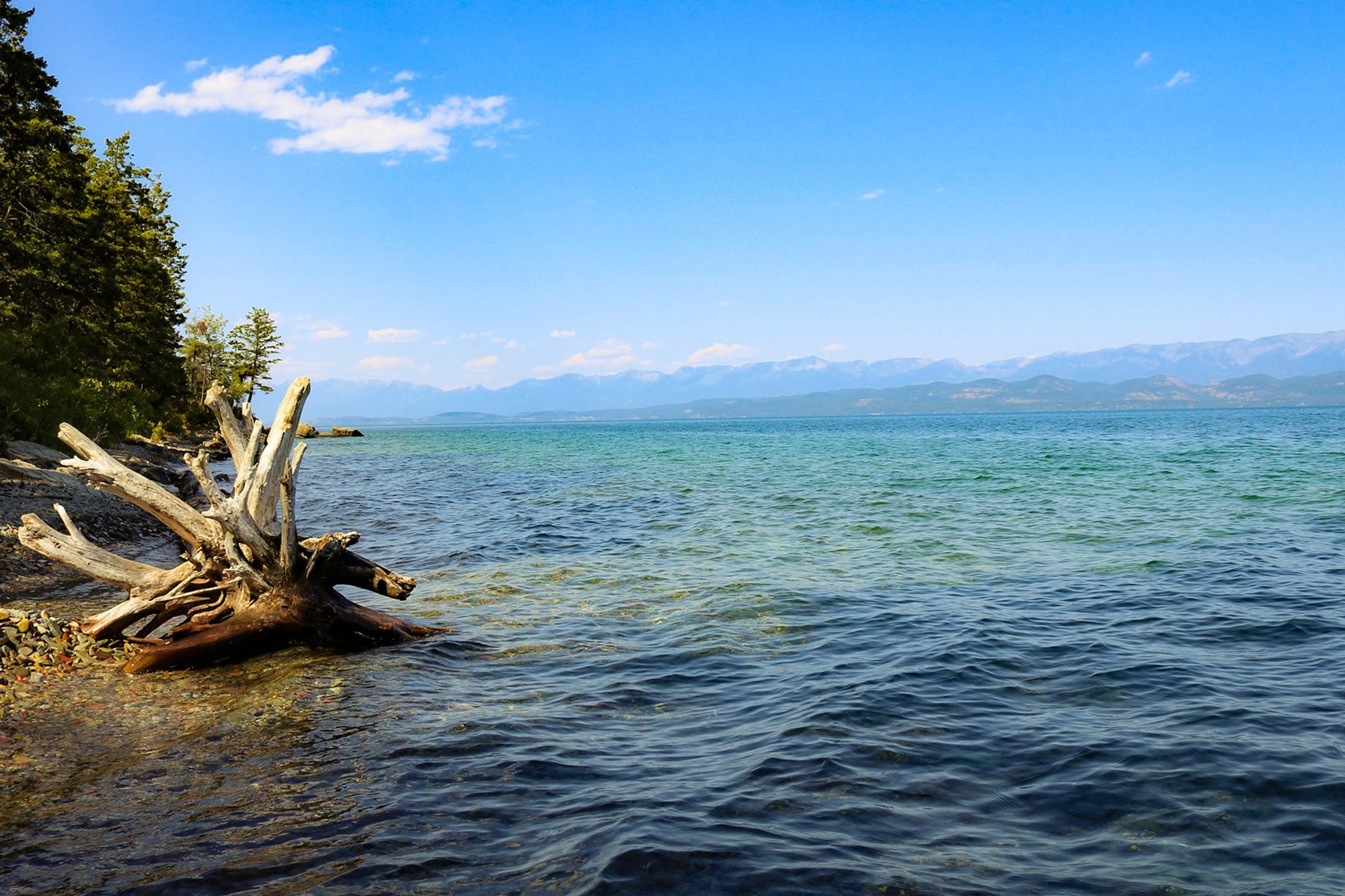 Seven miles outside Kalispell, Flathead Lake is the largest freshwater lake west of the Mississippi. Fall finds the lake awash in crimson and gold reflections along the shoreline. Drive around the entire lake or down Highway 35 on the east side and into Flathead National Forest and the Jewel Basin to get the full effect.