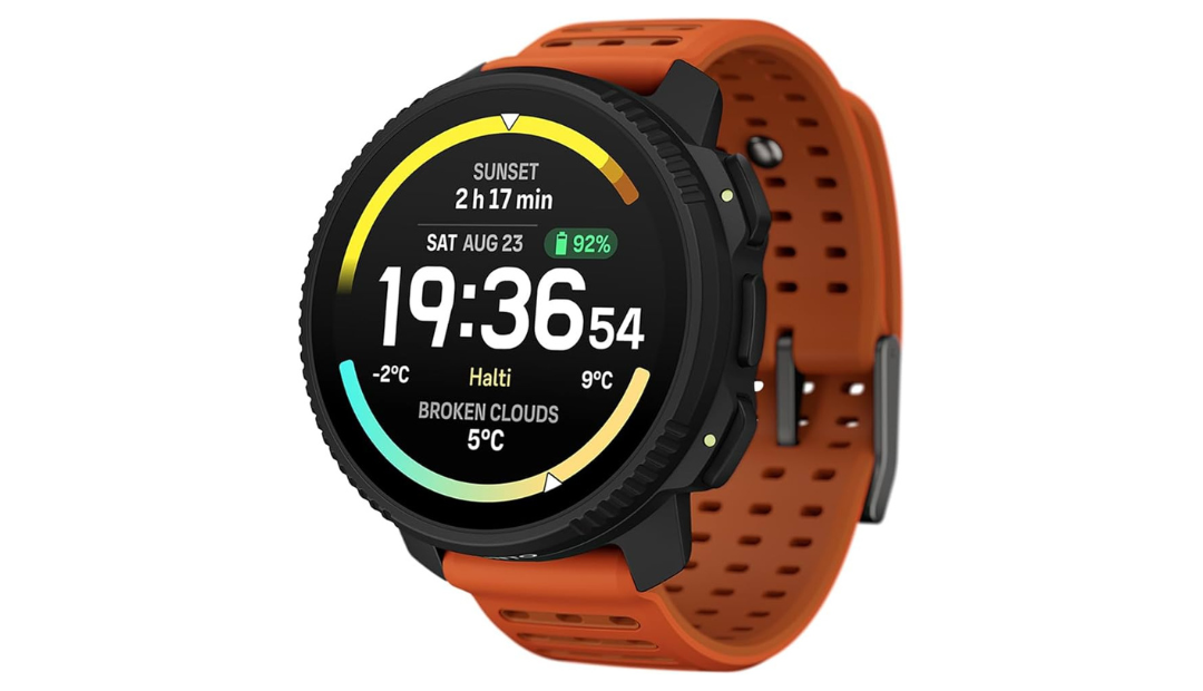 GPS watches are the real deal for backcountry navigation, and Suunto’s Vertical is one of the best. It’s serious hardware with offline maps, a precision altimeter, and multi-GNSS positioning. The battery life lasts over 60 hours in GPS mode, and the sapphire crystal lens is tough. The interface takes some time to learn, but it’s deep and useful.